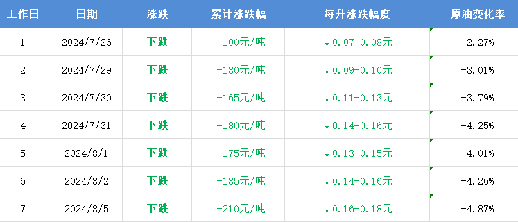 @长垣车主! 8月5日,本轮国内油价计价统计周期第7个工作日,今日参考原油变化率-4.87%,预计汽柴油下调210元/吨,折算为每升油价下跌0.16-0.18元,调价日期:8月8日24时(周四晚12点)! 来 源:新乡广播电视台