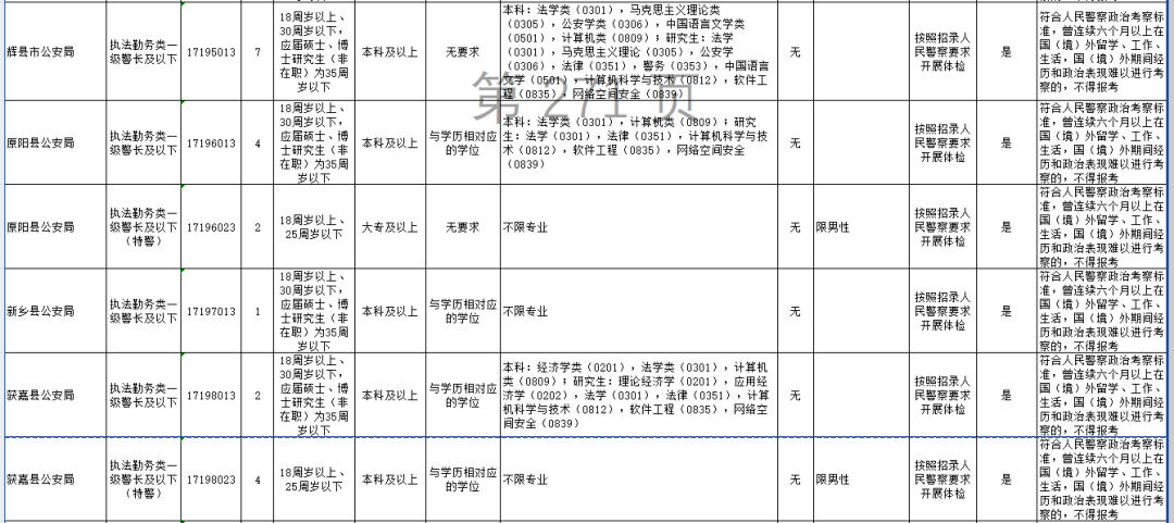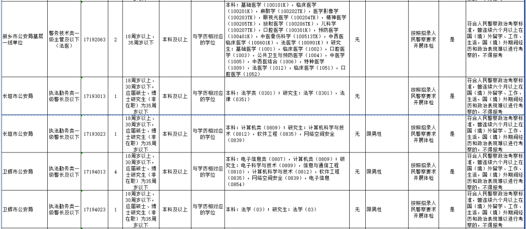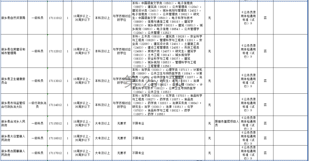 根据公务员法和《公务员录用规定》等法律法规,河南省公务员局将组织实施全省2025年度统一考试录用一级主任科员及以下和其他相当职级层次公务员工作。现将有关事项公告如下: 一、录用计划 全省计划录用公务员及参照公务员法管理的机关(单位)工作人员10993人(职位表见附件1)。 二、报考条件 报考者应当具备以下资格条件: (一)具有中华人民共和国国籍。 (二)年龄一般为18周岁以上、35周岁以下(1989年1月至2007年1月期间出生);除对年龄有特殊要求的职位外,2025年应届硕士、博士研究生放宽到40周岁以下(1984年1月以后出生)。 (三)拥护中华人民共和国宪法,拥护中国共产党领导和社会主义制度。 (四)具有良好的政治素质和道德品行。 (五)具有正常履行职责的身体条件和心理素质。 (六)具有符合职位要求的工作能力。 (七)具有大学专科及以上文化程度。 普通高等学校2025年应届毕业生应当于2025年7月31日前取得毕业证(学位证),并以其即将获得的最高学历报考;其他报考者应当在报名前取得相应学历(学位)。我省全日制技工院校高级工班、预备技师(技师)班毕业生,可分别参照大专、本科文化程度报考。报考法官助理和检察官助理等职位的,学历学位条件还须相应符合法官法、检察官法等相关规定。 (八)具备拟录用职位要求的其他资格条件。 1.对于报考职位要求的政治面貌、资格证书等条件,报考者一般应在报名前具备相应资格条件。对于参加2024年国家统一法律职业资格考试达到相应合格分数线的报考者,可先按具备该资格条件报考,但应于2025年9月30日前取得该资格证书。 2.专业条件按照国务院学位委员会和教育部《职业教育专业目录》(2021年版)、《普通高等学校本科专业目录》(2023年版)、《研究生教育学科专业目录》(2022年版)执行。专业类别包含关系如下:专业要求为一级学科的,该一级学科所包含的二级学科均符合要求;专业要求为专业类的,该专业类所包含的具体专业均符合要求;专业要求为学科门类的,该门类所包含的专业类和一级学科均符合要求。在上述专业目录中未有具体对应的,可参照主要课程、研究方向、学习内容和职位专业需求等,综合研判是否符合职位要求。 3.招考职位明确要求有基层工作经历的,报考者必须具备相应的基层工作经历。基层工作经历,是指在县(市、区、旗)、乡(镇、街道)党政机关,村(社区)党组织或者村(居)委会,以及各类企业、事业单位工作过(参照公务员法管理的事业单位不在此列)。在军队团和相当团以下单位工作的经历,退役士兵在军队服现役经历,可视为基层工作经历。基层工作经历起始时间按照《关于公务员考录中基层工作经历起始时间界定的意见》界定,基层工作经历计算时间截至2025年1月。 4.招考职位要求面向服务基层项目人员的,报考者须是服务期满且考核合格的我省原大学生村干部或者我省招募的参加高校毕业生“三支一扶”计划、志愿服务西部计划、志愿服务贫困县计划、农村义务教育阶段学校教师特设岗位计划人员,以及在军队服役5年以上的我省高校毕业生退役士兵。我省招募的参加“政府购岗”计划、特招医学毕业生计划服务期满且考核合格人员,也可报考面向服务基层项目人员定向招考的职位。在原国家连片特困地区重点县、国家扶贫开发重点县和省定扶贫开发工作重点县的县、乡(镇)事业单位工作满5年的事业编制人员和本县退役士兵,可报考本县面向服务基层项目人员定向招考的职位。 5.招考职位要求面向高校毕业生退役士兵的,报考者须是按照国家招生计划统一录取的全日制普通高等学校毕业生从我省入伍,服现役期满退役的士兵(含毕业学年入伍并在服役期间取得学历的);按照国家招生计划统一录取的全日制普通高等学校学生在校期间从我省入伍,服现役期满退役后复学取得学历的退役士兵;从我省入伍,服现役期间取得国家承认的大专以上学历的退役士兵。 现役军人、在读的非应届高校毕业生、在职公务员和参照公务员法管理的机关(单位)工作人员,不得报考。公安院校公安专业2025年应届毕业生不得报考公安机关面向社会招考的职位。司法院校司法行政警察类专业2025年应届毕业生不得报考司法行政机关面向社会招考的职位。 因犯罪受过刑事处罚的人员、被开除中国共产党党籍的人员、被开除公职的人员、被依法列为失信联合惩戒对象的人员,在各级公务员招考中被认定有舞弊等严重违反录用纪律行为的人员,公务员和参照公务员法管理的机关(单位)工作人员被辞退未满5年的,以及法律法规规定不得录用为公务员的其他情形的人员,不得报考。 报考者不得报考录用后即构成公务员法第七十四条第一款所列情形的职位,不得报考与本人有夫妻关系、直系血亲关系、三代以内旁系血亲关系以及近姻亲关系的人员担任领导成员的用人单位的职位;属于职位要求不得报考情形的,也不得报考。 三、信息发布及咨询 全省2025年度统一考试录用公务员工作专用网站为河南人事考试网(http://www.hnrsks.com)。招考公告及与本次招考总体工作有关的信息和事项通过该网站发布。 各省辖市(含济源示范区,下同)公务员主管部门和省直招录机关(单位),通过其考试录用公务员工作专用网站发布本市、本机关(单位)招录工作的相关信息和具体事项,并公布政策咨询电话(专用网站及