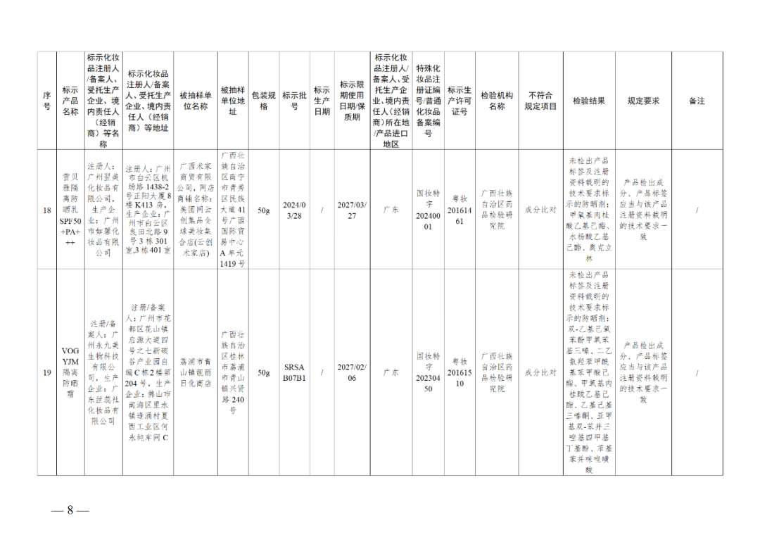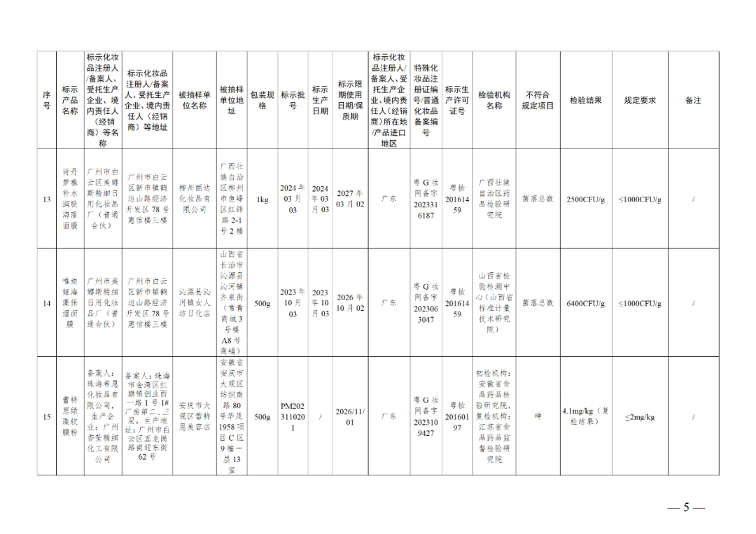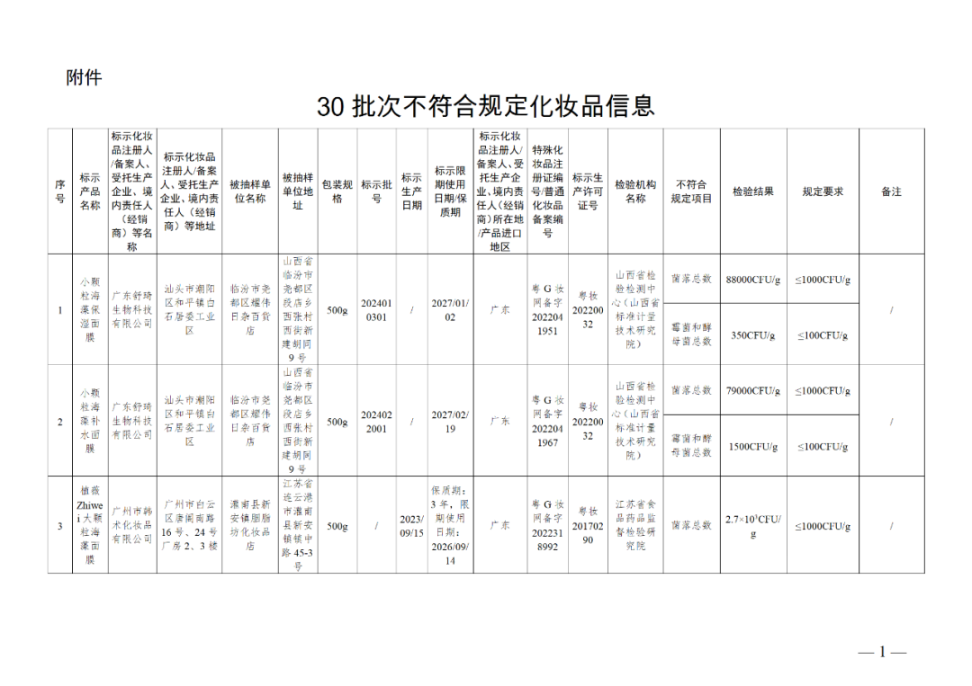 1月9日,国家药监局网站发布《关于30批次不符合规定化妆品的通告》。通告如下:在2024年国家化妆品抽样检验工作中,经山西省检验检测中心等单位检验,产品标签标示名称为小颗粒海藻保湿面膜等30批次化妆品不符合规定。根据《化妆品监督管理条例》《化妆品生产经营监督管理办法》《化妆品抽样检验管理办法》,国家药品监督管理局要求上海市、广东省药品监督管理局对上述不符合规定化妆品涉及的注册人、备案人、受托生产企业等依法立案调查,责令相关企业立即依法采取风险控制措施并开展自查整改。各省(区、市)药品监督管理部门要责令相关化妆品经营者立即停止经营上述化妆品,并依法调查其进货查验记录等情况,对违法产品进行追根溯源,发现违法行为的,依法严肃查处;涉嫌犯罪的,依法移送公安机关。