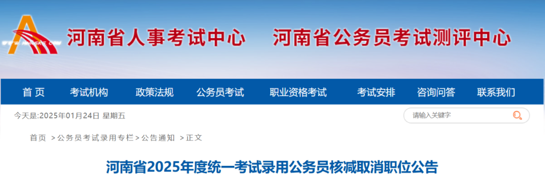 河南省2025年度统一考试录用公务员的报名确认和缴费工作已结束,现将核减职位、取消职位和报考职位被取消的人员名单予以公布(详见附件)。 报考职位被取消的人员,请于本公告发布后至1月26日17:00期间,登录河南人事考试网(http://www.hnrsks.com)重新选报其他职位。未能重新选报职位的,按主动放弃处理,退还缴纳的笔试考务费。 附件: 1.河南省2025年度统一考试录用公务员核减职位.xls 扫码查看↓ 2.河南省2025年度统一考试录用公务员取消职位.xls 扫码查看↓ 3.河南省2025年度统一考试录用公务员报考职位被取消的人员名单.xls 扫码查看↓ 河南省公务员局 2025年1月24日
