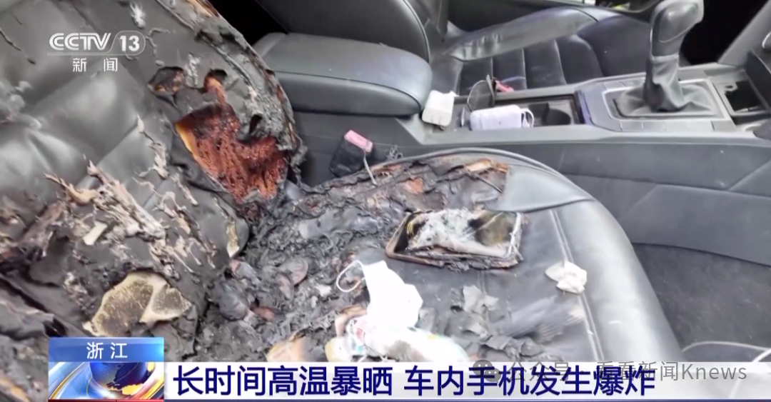 随着近期温度逐渐升高 小编要特别提醒大家车内密闭环境下 夏天温度能飙升到60℃~70℃ 一些看似平常的车内物品 可能随时变身“定时炸弹” 6月18日,浙江湖州安吉县一停车场的私家车着火,部分内饰被烧焦,副驾驶座椅损毁严重。 经事后调取公共视频及现场勘验,初步判定为手机在高温暴晒下发生爆炸所致。 据车主描述,事发当天上午,他将车辆停在公共停车位上,将备用手机遗落在车内。 该车车头正对太阳,因当日气温较高,且在密闭的车内,温度远超室外;加之事发车辆未采取任何遮阳措施,致使车内温度急剧升高,进而引发手机爆炸。 消防员现场查看后发现,该事发车辆上可谓是集齐所有的“定时炸弹”:手机、老花镜、饮料瓶、未拔下的数据线等。 防自燃!警惕这些“危险品” 消防部门提醒,夏季高温天 切勿将手机、香水、打火机等 易燃易爆物品放置在车内 ❌ 打火机 打火机一般以液态丁烷为燃料,这种燃料填充到机体内后,在50℃高温下极易膨胀,遇明火会发生爆炸。 ❌ 眼镜、瓶装水、水晶球 这些具有凸透镜效果的物品,长时间聚光发热容易引燃车内可燃物。 ❌ 喷雾和香水 一些罐装喷雾的主要成分是LPG,也就是液化石油气,主要由丙烷和丁烷组成。若在车内过量喷洒或人体过量喷涂,一旦遇到明火就会燃烧,遇高温也有爆炸风险。 而香水基本都含有酒精类的易燃液体,这类液体在高温密闭条件下会加速挥发,此时若直接与明火接触就会发生燃烧,从而导致火灾。 车辆自燃如何应对? 自燃不仅会导致车辆受损 还可能危及生命! 一旦发生自燃,该如何处置? 小火快灭 轻微烟雾或小部位起火时,可用车载灭火器、毛毯、沙子覆盖,迅速扑灭火源避免扩散。 中火阻氧 若火苗从缝隙蹿出,切勿直接打开前机盖,应先开一条小缝喷射灭火剂,确认无烟后再清理,避免空气突然进入引发轰燃。 大火速逃 如果火势太凶猛无法控制,人员要尽快远离车辆后再拨打119求助,以确保人身安全。 温馨提醒: 高温天气车辆做好遮阳措施 停在阴凉处! 另外,爱车不是储藏室切勿在车内放置 打火机、眼镜等物品 谨防车厢变“烤箱”~眼下,我国中东部正在经历今年以来最强高温过程。未来,高温将陆续覆盖华北南部、黄淮至江南、华南大片区域,且强度加强,部分地区高温天天可见,暑热或贯穿全天。近日,国家疾病预防控制局联合中国气象局发布首个全国高温健康风险预警。
