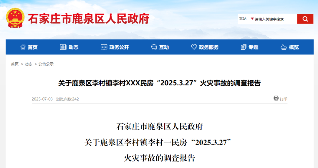 近年来 各种用电设备被广泛使用 随着生活用电量的增加 许多微小隐患被大家长期忽视 最终成为“隐藏的凶手” 近日 石家庄市鹿泉区人民政府 发布一起火灾事故调查报告 2025年3月27日10时12分 河北省石家庄市鹿泉区李村镇李村 一民房发生火灾 辖区消防部门 出动4辆消防车20名消防员 第一时间赶赴现场处置 及时将火势扑灭 火灾过火面积约10平方米 直接经济损失102850元 造成1人死亡 事故发生后 多部门组成火灾事故调查组 对此起火灾事故开展调查 经认定 火灾起火原因为 电气线路故障引燃沙发等可燃物 导致火灾发生 主要依据 根据住户证言:当时她烧着水就出去卖面了,且烧水壶在茶几上,插排连着墙插; 客厅西墙过火较重有烟熏过火痕迹,墙皮大面积出现裂痕,墙面上木板装饰品被烧毁,可见大量燃烧过后的黑色碳化物残骸。西墙中部上方可见一墙插座,墙插座线路裸露置外,裸露线路过火痕迹严重,整体呈现由此处“V”字型燃烧蔓延至整间房屋。 电气火灾具有突发性和难以扑救的特点 一旦电气设备发生短路、过载等故障 产生的电弧或高温 足以在瞬间引燃周围可燃物 上述亡人火灾教训惨痛 希望每个人都能清楚 电气火灾的这5大征兆 及时发现火患,远离灾难! 同时真心建议各个家庭 做到以下几点 预防电气火灾 线路“换新衣” 家中应及时更换老旧线路,更换时要选用合格的电线电缆,并穿管敷设,确保线路安全。 线路“大扫除” 家中不要私拉乱接电线,如有用电需求,应找专业电工进行线路改造和安装,安装漏电保护器、空气开关等保护装置,并定期进行检测和维护,确保其正常运行。 用电“减负” 家中应选用合格的电器,避免超负荷用电,大功率电器要使用专用插座,并与可燃物保持安全距离。 人走电断 离开家时,务必关闭所有电器电源,避免待机状态隐患。闲置的充电器应当及时拔起,切勿空插在排插之上。