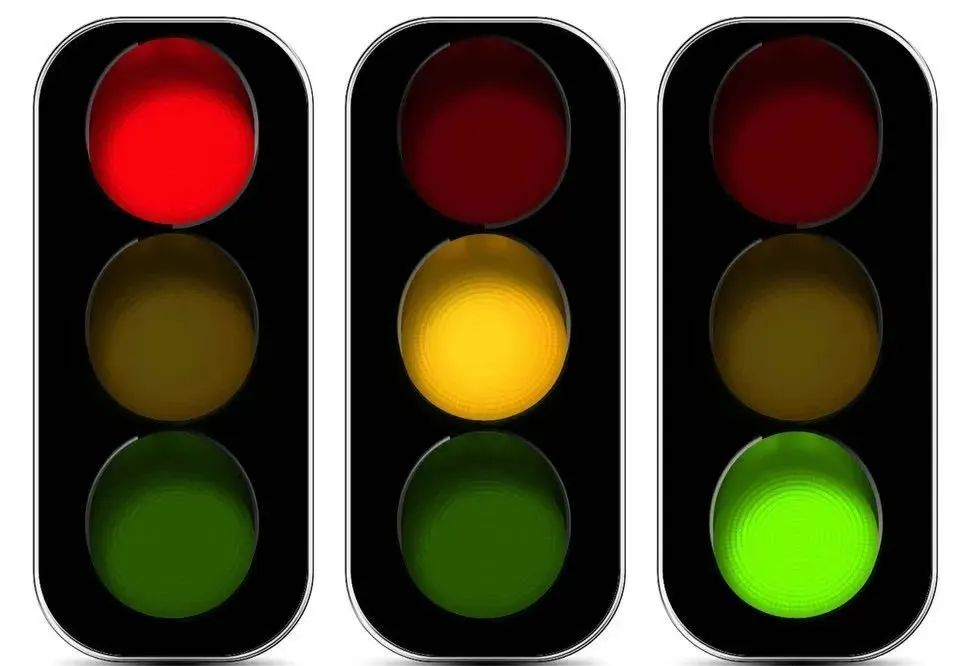 交通信号灯由红灯、绿灯、黄灯组成。红灯表示禁止通行,绿灯表示准许通行,黄灯表示警示。