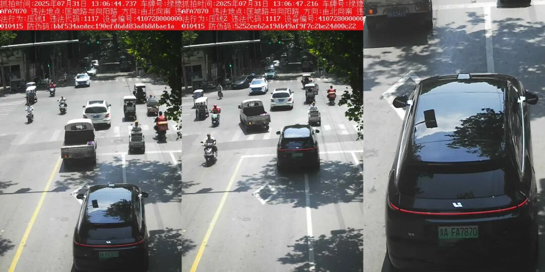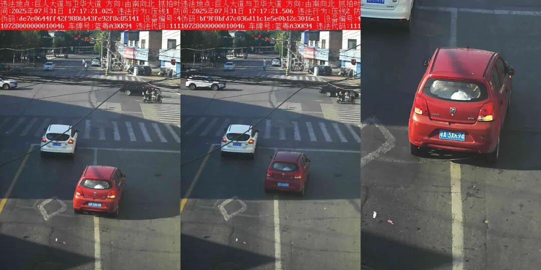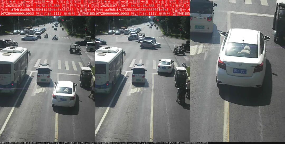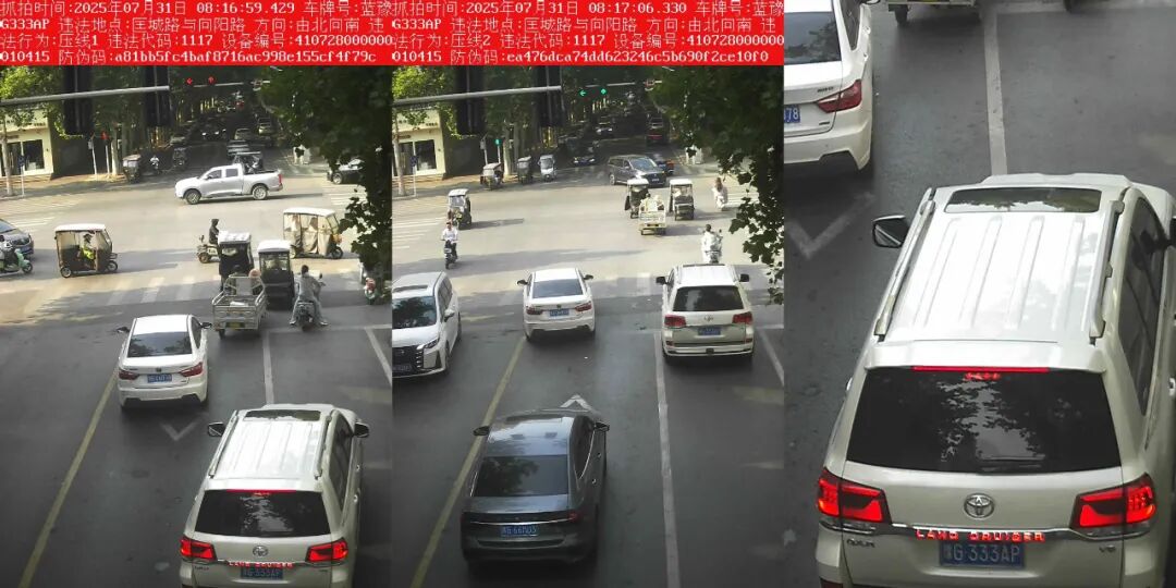 电子警察抓拍的“压线”交通违法行为