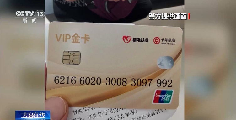北京市大兴区某银行,一名七十多岁的老人独自走进营业厅,兴冲冲地递给工作人员一张卡说要取钱。然而,一张印着“精准扶贫”四个字的银行卡却引起了工作人员的警觉。工作人员:您这个不是银行卡,这卡的材质就是假的,该有的信息都没有。