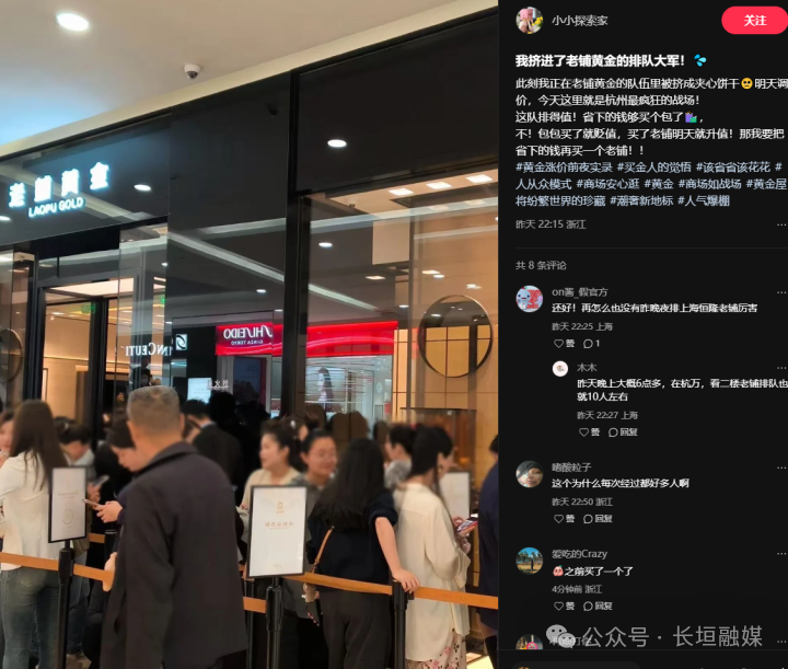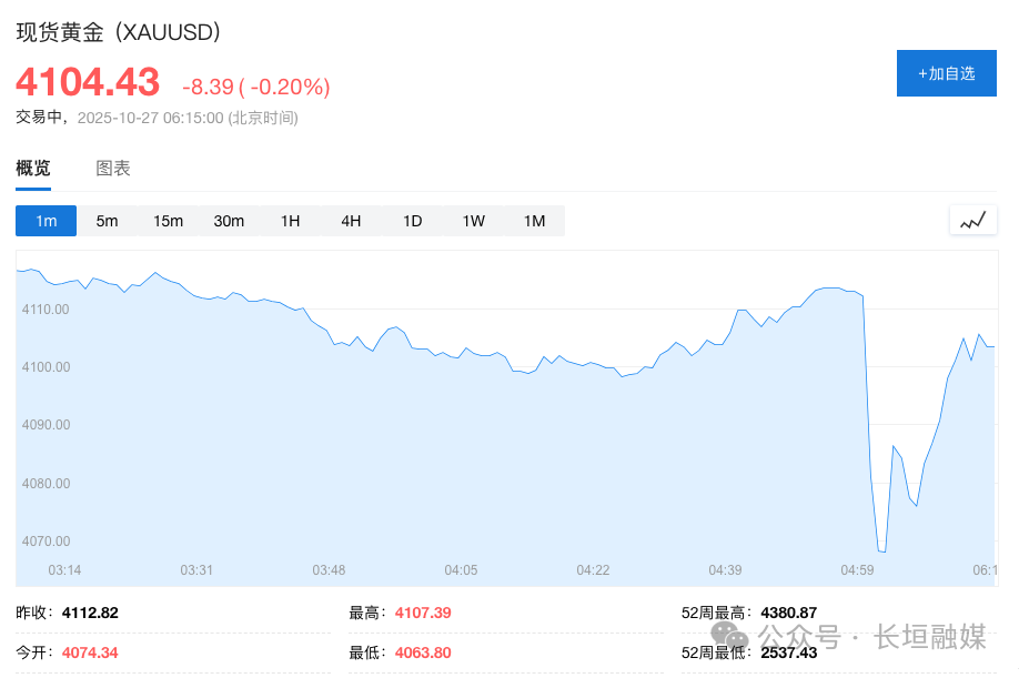 10月27日,现货黄金跳空低开后,现重新站上4100美元/盎司。 100克左右的108念珠一夜涨了4万元 老铺年内第三次调价最高涨了29% 昨天,老铺黄金年内第三次提价,最高涨幅28%。不少人一觉醒来发现刚入手的黄金身价暴涨。 这是继8月25日后老铺黄金再次调价,也是年内的第三次调价。相比今年8月份5%-12.5%的涨幅,本次涨价幅度在5%-29%之间,部分素金产品涨幅普遍超过25%。 从产品来看,这次调价幅度最大的是一些素金类产品,涨幅普遍在25%以上。 比如被杨幂带火的福袋,因为寓意代代有福,是老铺最火的一款作品之一。8月25日调价后一只19.6克的福袋26500元,最新价格是34030元,涨幅为28.42%。 素金葫芦涨幅更大。以克重26.6克为例,从32500元涨到了42180元,涨幅为29.59%;十字金刚杵手镯,41.2克从原来的50290元涨到了65180元,涨幅为29.61%。 一块黄金龙牌53.39克的龙牌,之前售价为71169元,昨天早上已经更新到90750元,涨幅同样是28%左右。 一夜涨了4万多元的108念珠,也是老铺黄金最火的一款产品之一。一条念珠102克左右,从此前的148000元涨到了189630元,涨幅为28%左右。而就在年前,同样一条念珠的公价为9万元左右,一年时间涨了近10万元。 月底黄金饰品集中涨价 网友:这黄金是非买不可吗? 除了老铺,周大福、君佩等品牌也即将涨价。最近黄金珠宝和饰品的集中提价,引发了新一轮排队抢购潮。特别是本周五,老铺黄金上海恒隆店新开前一天,很多人提前一天连夜排队。老铺黄金上海恒隆店不得不在凌晨2点40分通过企业微信号发出敬告:截至10月25日凌晨2:30,老铺黄金恒隆广场店10月25日可接待顾客人数已经达到接待人数上限。 恰逢周末,杭州的老铺黄金前也排起了长队。有网友说,差点挤成了夹心饼干。 在这样“大开大合”的市场表现下,黄金投资的热度却居高不下,许多投资者趁着近期回调大举加码。 Choice数据显示,10月21日大跌至今的4个交易日中,境内黄金ETF净申购份额达到8.48亿份。其中,国泰黄金ETF净申购2.25亿份,博时黄金ETF、华安黄金易ETF、易方达黄金ETF净申购份额也超过1亿份。 资金流入令黄金ETF在价格下跌中,实现了规模的不跌反升。截至10月24日,境内黄金ETF的规模已经达到2368.6亿元,较“跳水”前(10月20日)的2361.3亿元增加了7.3亿元。 投资者购金热情居高不下 尽管金价波动,但投资者购金热情依然较高。一位定投黄金ETF的投资者表示,她已定投逾两年,累计收益超过40%。“买得早很幸运,现在金价挺高了,波动也不小,但长期我还是看好的,就保持固定拿零花钱出来定投。”她说。 投资者当下对黄金有多关注?以国庆节后一周数据为例,蚂蚁财富平台数据显示,有超940万人次上支付宝搜索“黄金”,较去年同期翻了5倍。 年轻人也逐渐成为黄金投资的重要力量。蚂蚁财富平台数据显示,目前,该平台上的黄金用户中,有超55%为90后和00后。另外,90后、00后中,还有近1000万人同时配置了货币基金、债券基金和黄金基金。 不仅是线上投资,线下购金的热度也居高不下。沪上一家黄金品牌直营店员工也告诉记者,尽管目前金价较去年显著提升,但对客流影响并不大。“现在很多年轻人觉得黄金‘香’,愿意买金饰品,就是因为它既能保值增值,也能佩戴装饰,还能置换折现。”她说。