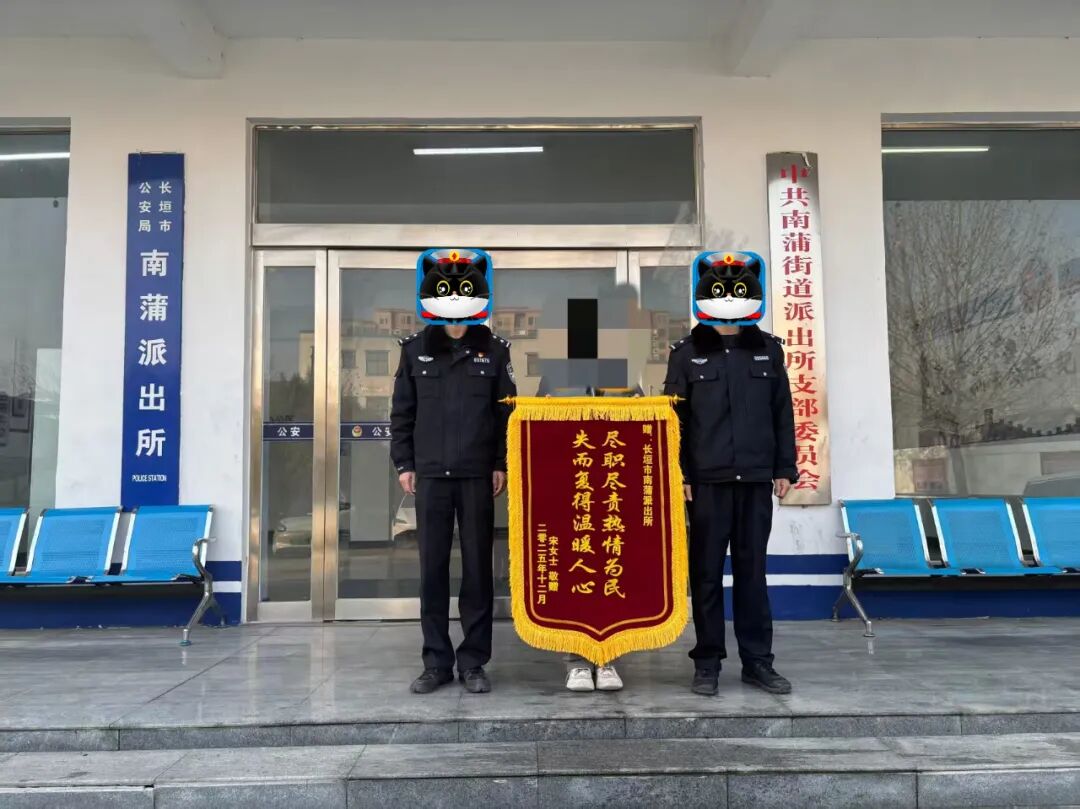电动三轮车“失而复得”,受害人特意制作了一面锦旗送到南蒲派出所,以表达自己的感激之情。