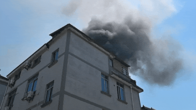 民房楼顶冒出阵阵黑烟经查竟只是一碗虾片所致近日浙江金华市婺城区乾西乡一民房楼顶冒出阵阵黑烟附近小卖铺老板发现险情后第一时间拨打报警电话求助火灾现场。图源:金华消防消防员抵达现场后经勘察系顶楼居民厨房内