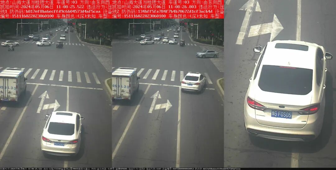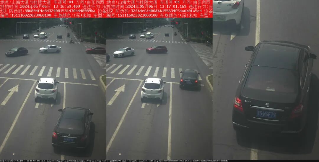 电子警察抓拍的“压线”交通违法行为